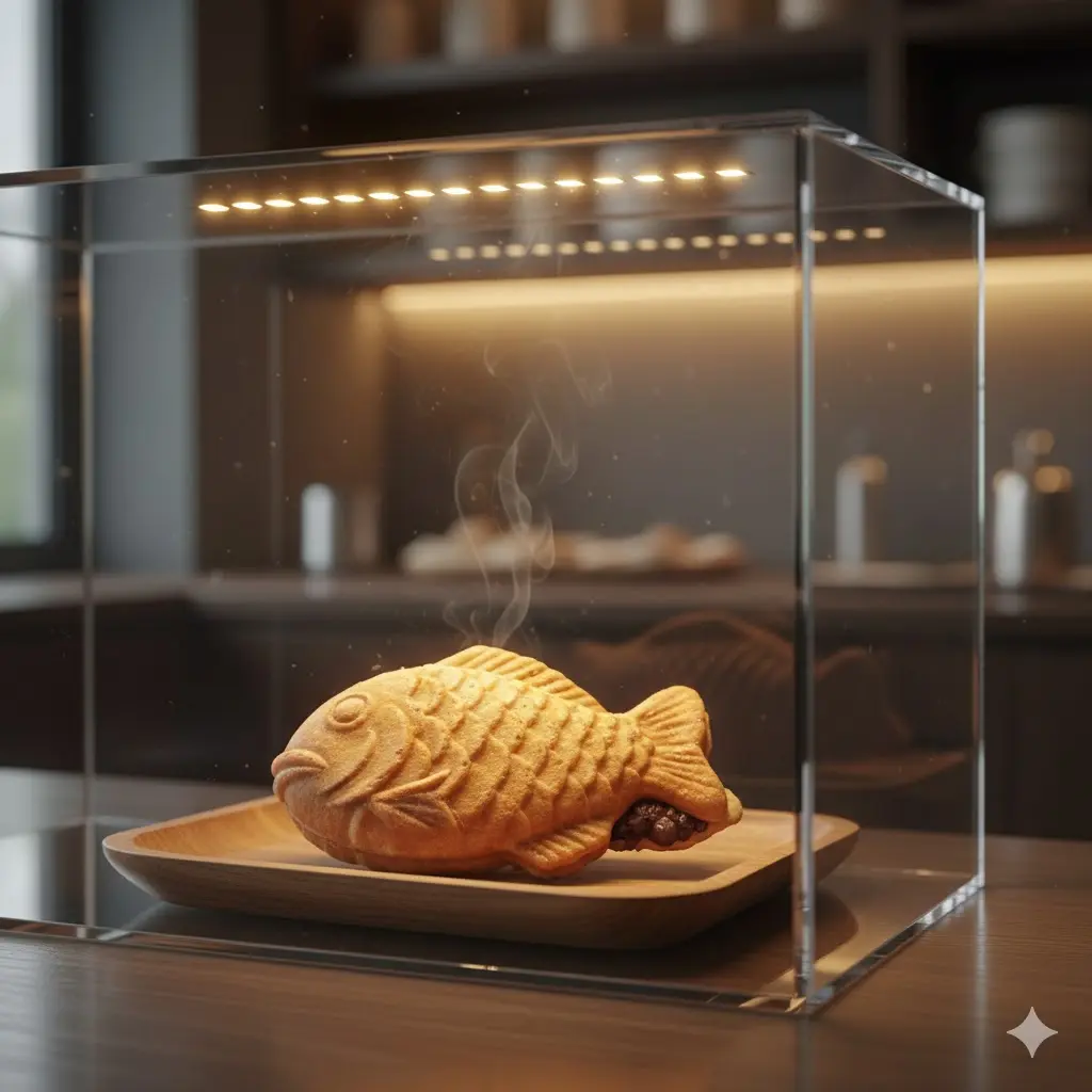 김이 모락모락 나면서도 겉은 바삭하고 속은 촉촉한 붕어빵의 질감이 유리 너머로 선명하게 보일 때, 비로소 고객의 지갑이 열립니다.