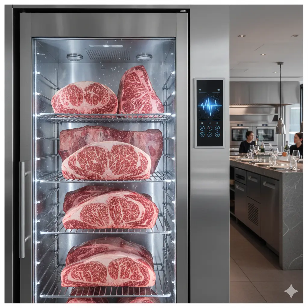 이 기술은 온도 변화를 미리 예측하여 냉각 출력을 미세하게 조절함으로써 내부 온도를 0.1도 단위로 유지하여 고기의 숙성 속도를 완벽하게 통제합니다.