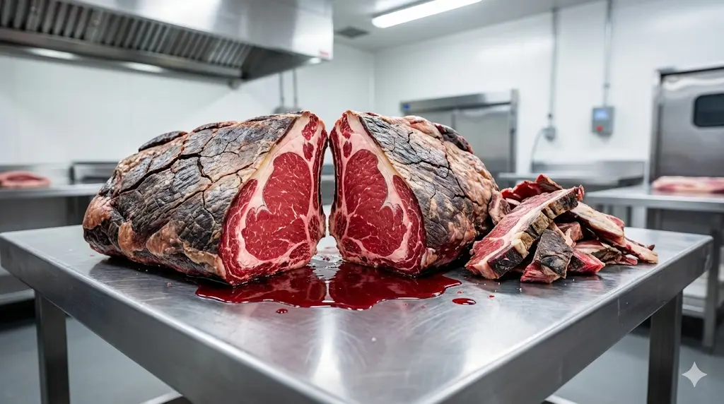 Q2. "고기 겉면만 딱딱하게 굳어버리고 안쪽은 숙성이 전혀 안 된 채 핏물만 고여 있습니다. 원래 드라이에이징은 손실률이 이렇게 큰가요?"