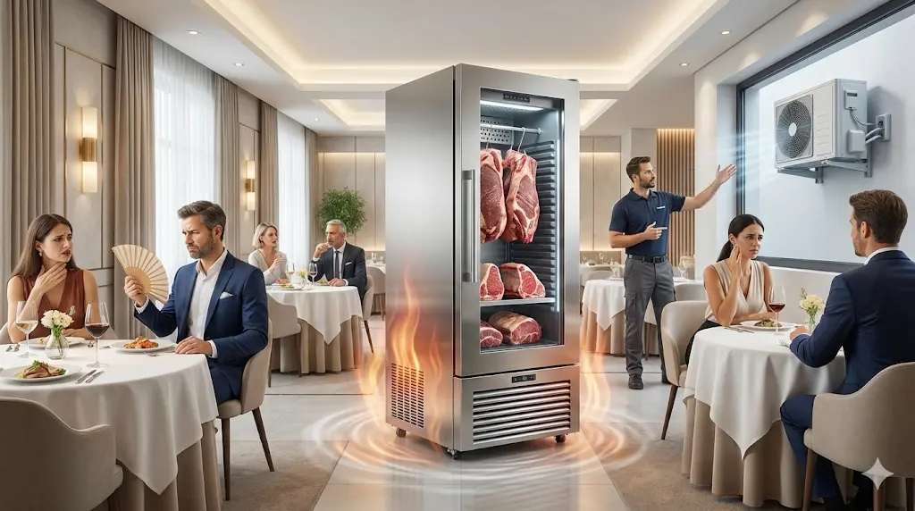 Q4. "매장 중앙에 숙성고를 배치했는데, 기계실 열기와 소음 때문에 주변 테이블 손님들이 불편해합니다. 해결 방법이 있을까요?"