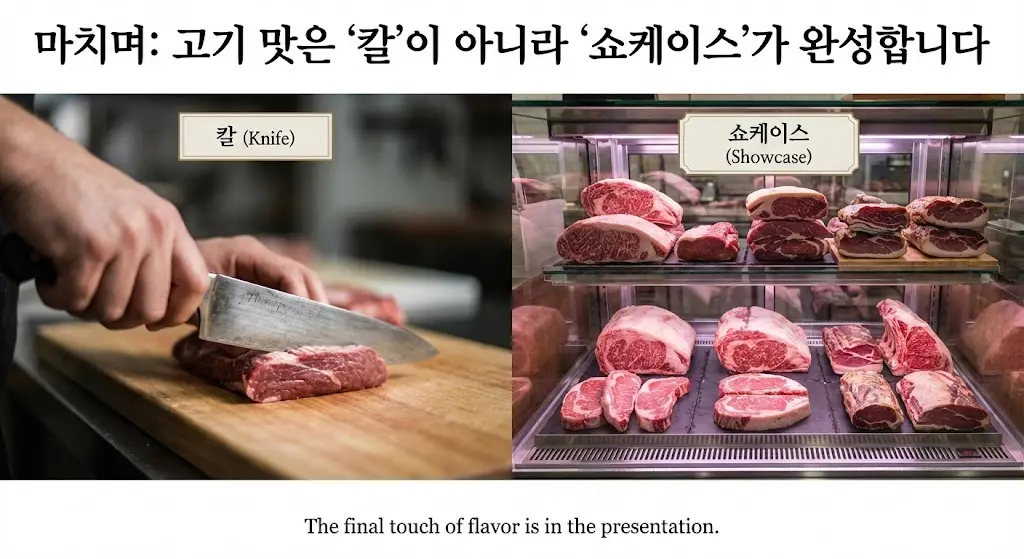 마치며: 고기 맛은 '칼'이 아니라 '쇼케이스'가 완성합니다