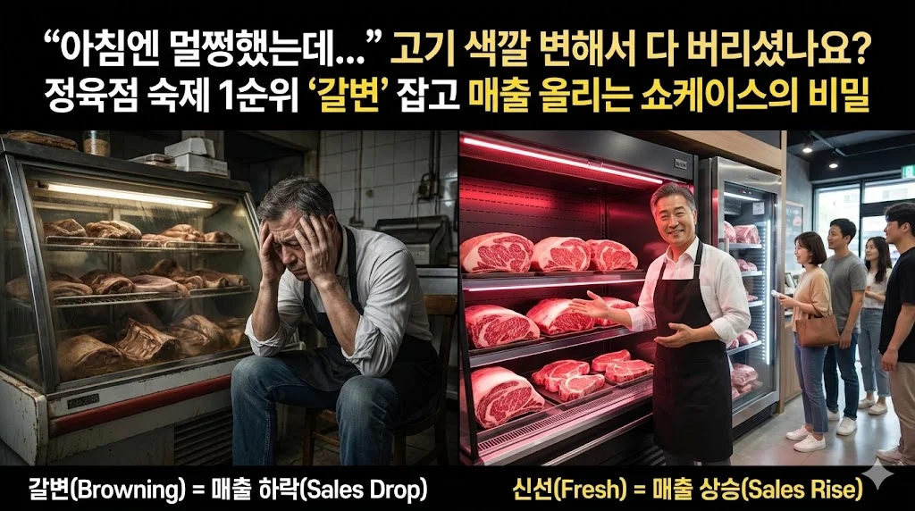 📍 "고기 색깔이 왜 이러지?" 정육점 매출 망치는 '갈변' 막는 비법 & 숙성고(Aging) 선택 가이드 (정육 쇼케이스)