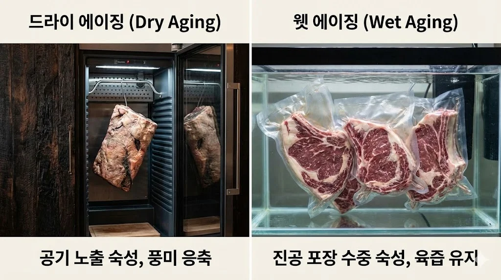 3. 요즘 대세는 '숙성(Aging)'! 드라이에이징 vs 웻에이징 숙성고 차이점