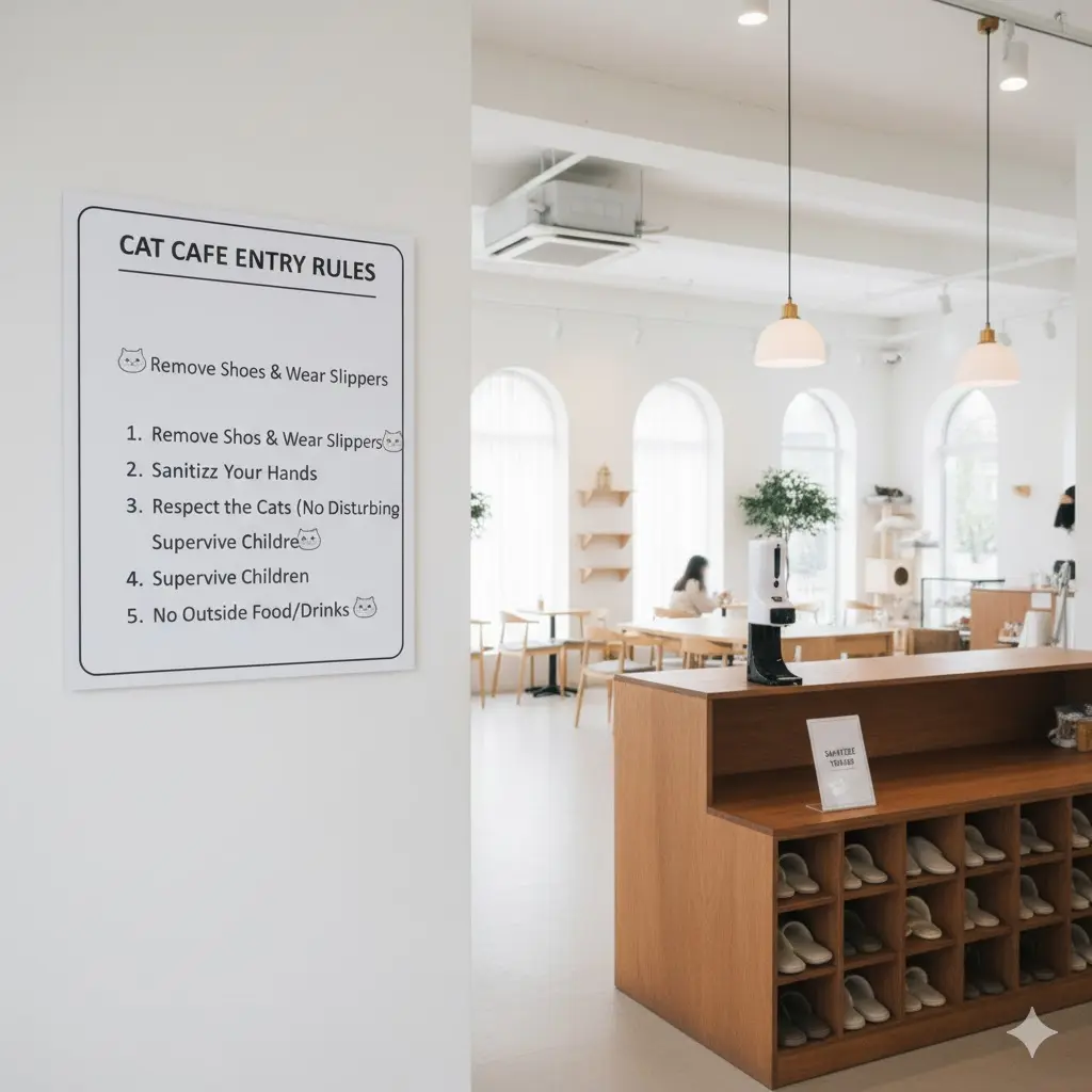 동선 분리: 음료 제조 구역과 고양이 활동 구역을 명확히 분리하여 위생 사고를 미연에 방지해야 합니다.