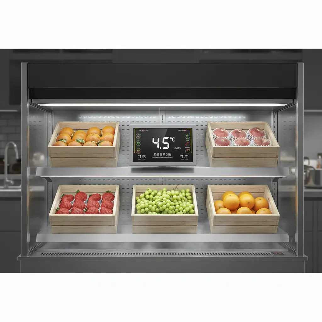0.1도의 정밀한 관리: 고성능 과일 쇼케이스는 단순히 차갑게 만드는 것이 아니라, 설정 온도를 0.1도 단위로 정밀하게 유지해야 했어요. 온도 편차가 크면 과일 세포가 파괴되어 당도가 떨어지고 식감이 변하기 때문이죠.