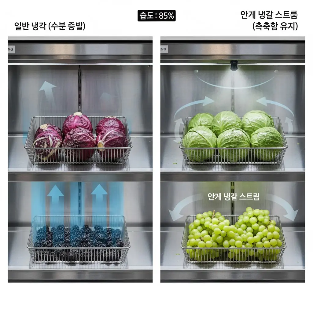 전략 2. 수분 증발을 막아야 '아삭함'이 삽니다! '안개 냉각 시스템'