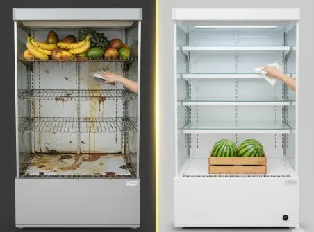 간편한 세척 구조: 과일에서 당분이 흘러나오면 끈적거리고 초파리가 꼬이기 쉽습니다. 바닥 배수 설계가 잘 되어 있고 선반 분리가 쉬운 업소용 쇼케이스여야 매일 청결한 위생 상태를 유지할 수 있답니다.