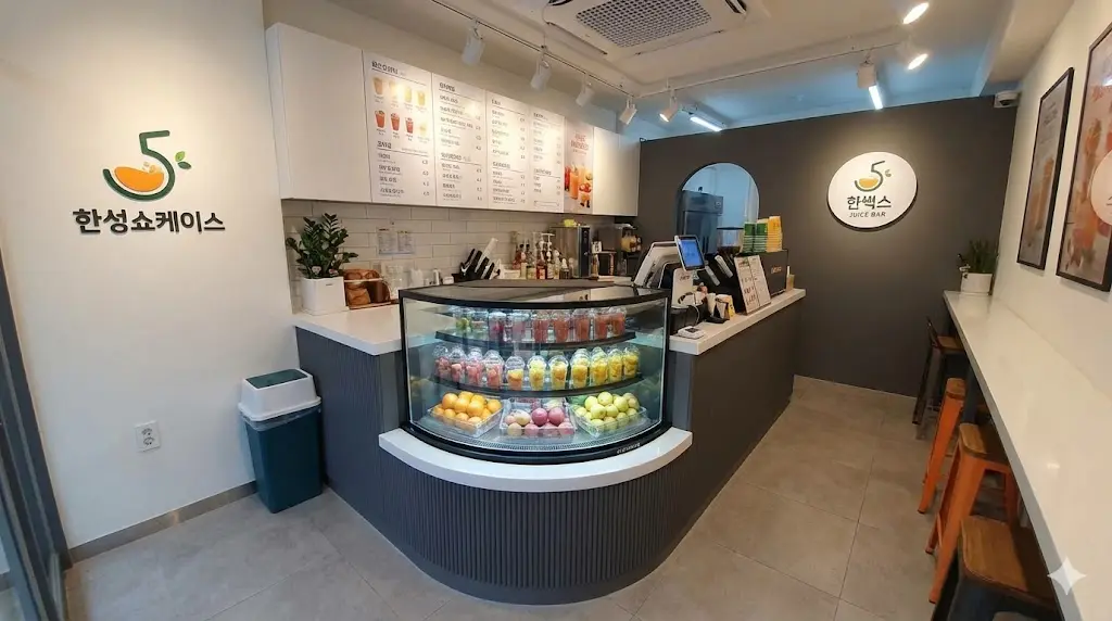 과일 매장이나 쥬스바는 매장 규모가 아기자기한 경우가 많아 공간 활용도가 생명이지요.
