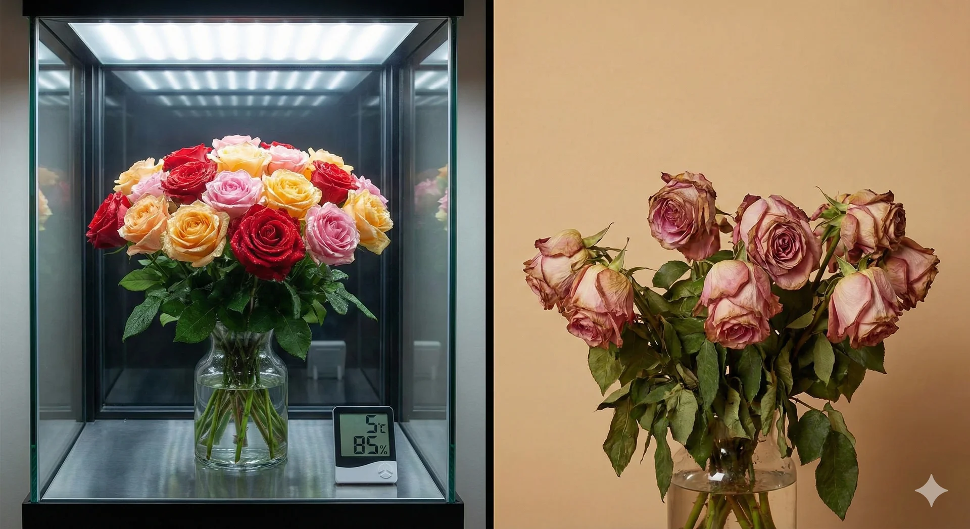 흔히 차가운 바람만 잘 나오면 된다고 생각하기 쉽지만 사실은 그렇지 않습니다. 꽃은 온도 변화에 매우 민감해서 미세한 차이에도 꽃잎 끝이 타거나 시들 수 있거든요. 특히 습도 조절이 관건입니다. 일반적인 가전제품과 달리 내부 습도를 일정하게 유지하면서도 공기 순환이 꽃에 직접 닿지 않게 설계된 장비를 골라야 합니다.