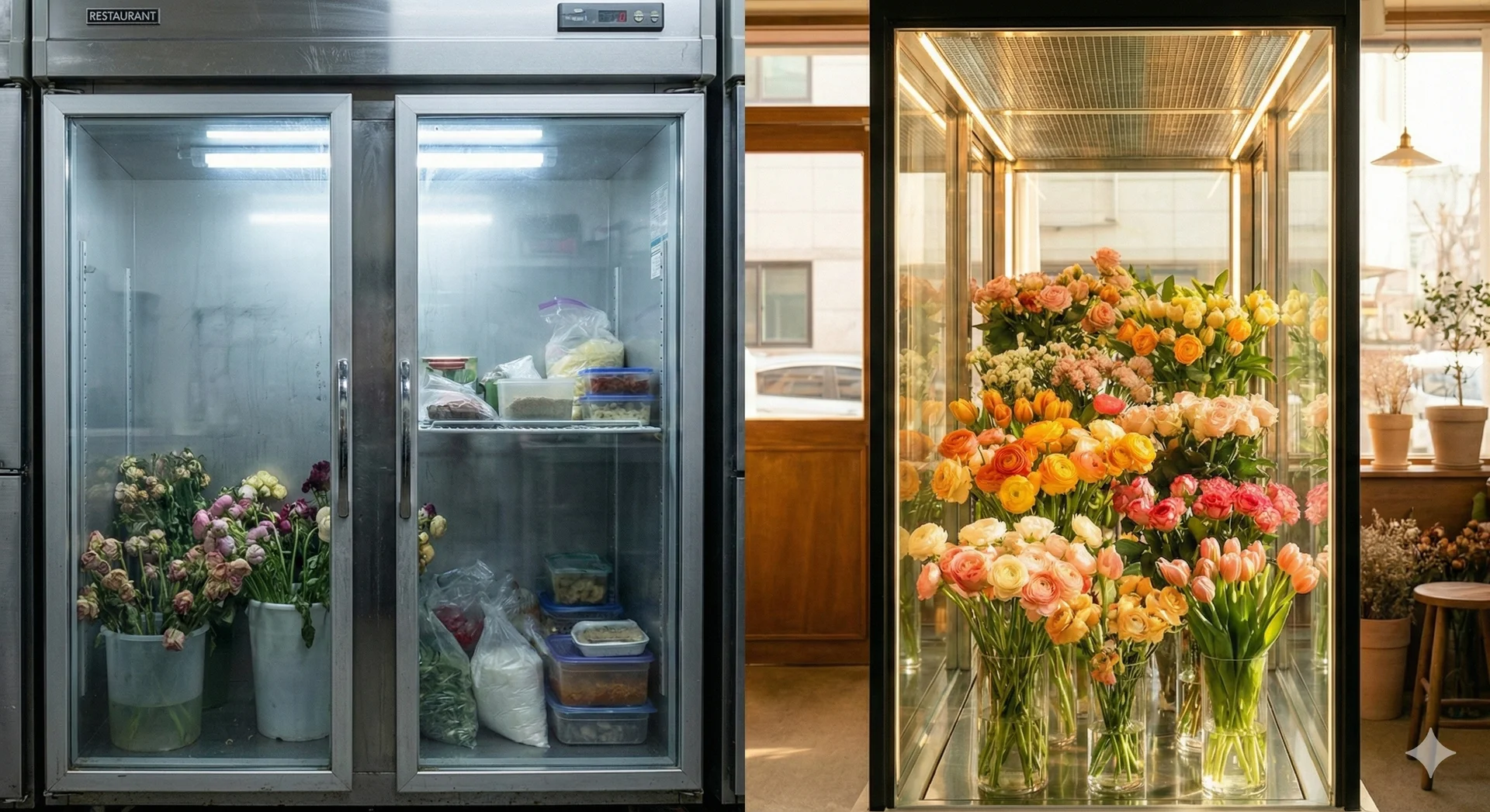 하지만 단순히 예쁜 진열대만 생각했다가는 며칠 못 가 시들어버리는 꽃들을 보며 속상해질 수도 있어요. 오늘은 단순한 가구를 넘어 꽃의 생명력을 연장해 주는 장비에 대해 편하게 이야기해 보려고 해요.
