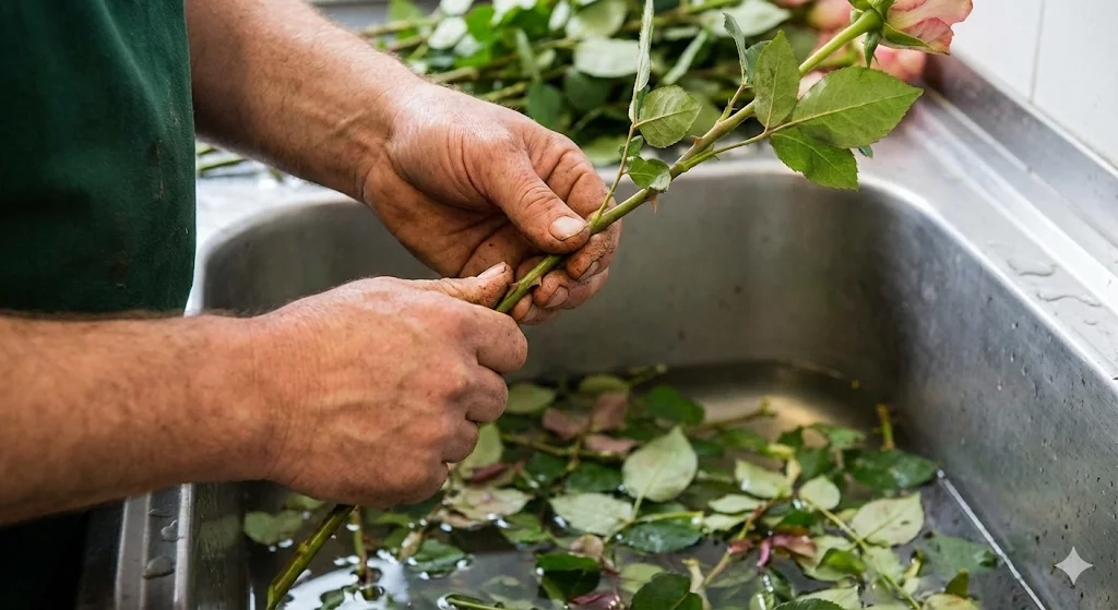 컨디셔닝의 고통: 꽃이 들어오면 가시를 제거하고, 잎을 정리하며, 물올림을 하는 '컨디셔닝' 작업에 수 시간이 소요됩니다. 이 과정에서 손은 거칠어지고 가시에 찔리는 일이 다반사입니다.