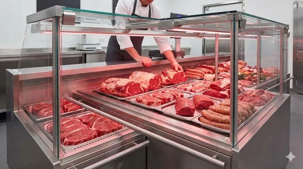 정육 쇼케이스는 단순히 고기를 차갑게 보관하는 것을 넘어, 고기의 붉은색을 가장 신선하게 보이게 하고 숙성(에이징) 과정까지 고려해야 하는 고도의 전문 장비입니다.