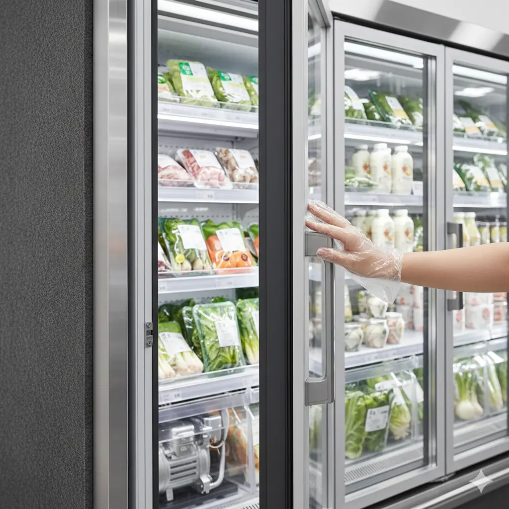 냉장고쇼케이스 도어에 적용된 항균 자석 가스켓은 수만 번의 개폐에도 밀착력을 유지하며 외부 오염 물질의 유입을 공학적으로 차단합니다.