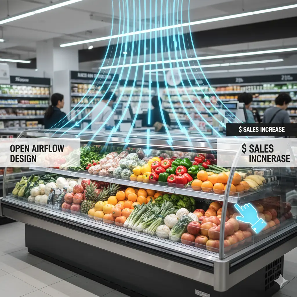 냉장평대쇼케이스 매출 극대화 효과, 왜 신선함이 눈으로 보일까? 정밀 층류 제어 기술과 시각적 마케팅 엔지니어링