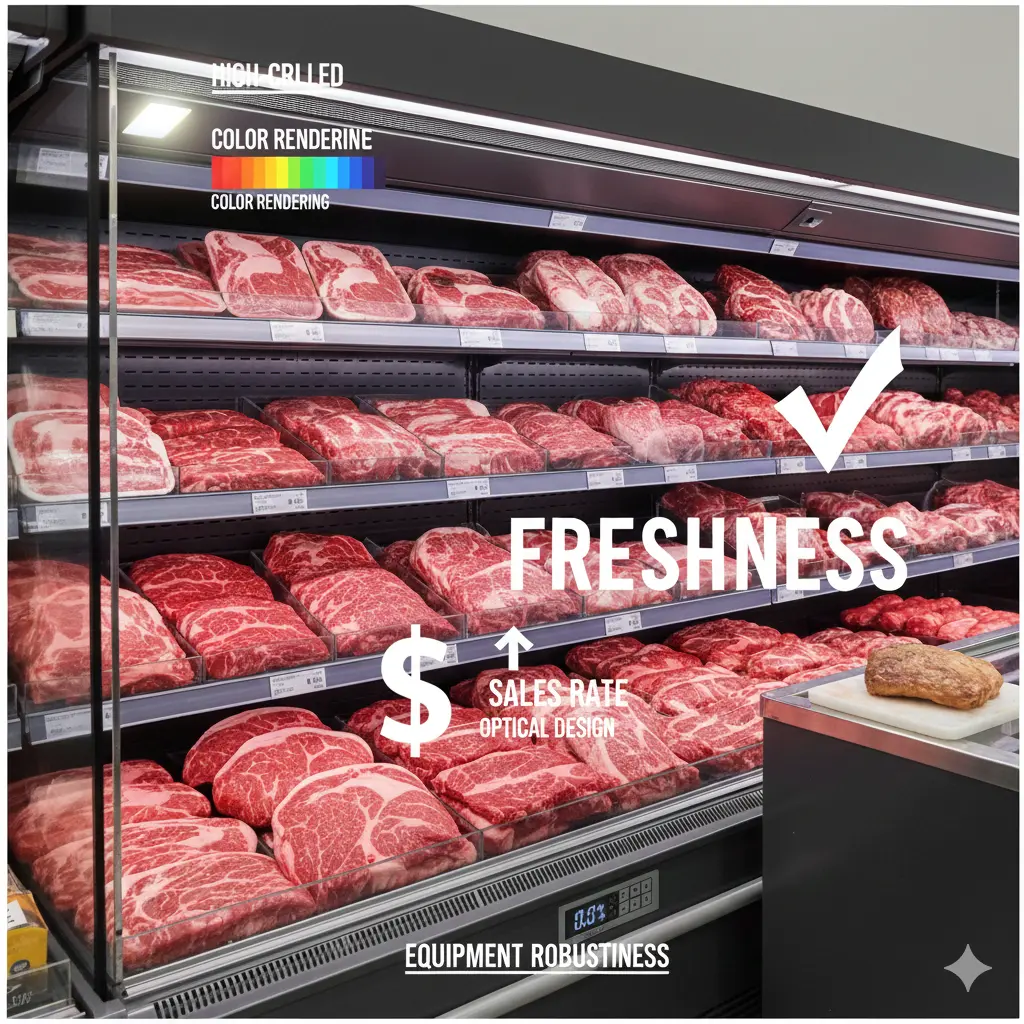 상품을 돋보이게 하는 조명은 마케팅의 정점이지만, 조명에서 나오는 열기가 식재료의 단백질 변성을 일으킨다면 그것은 치명적인 독이 됩니다.