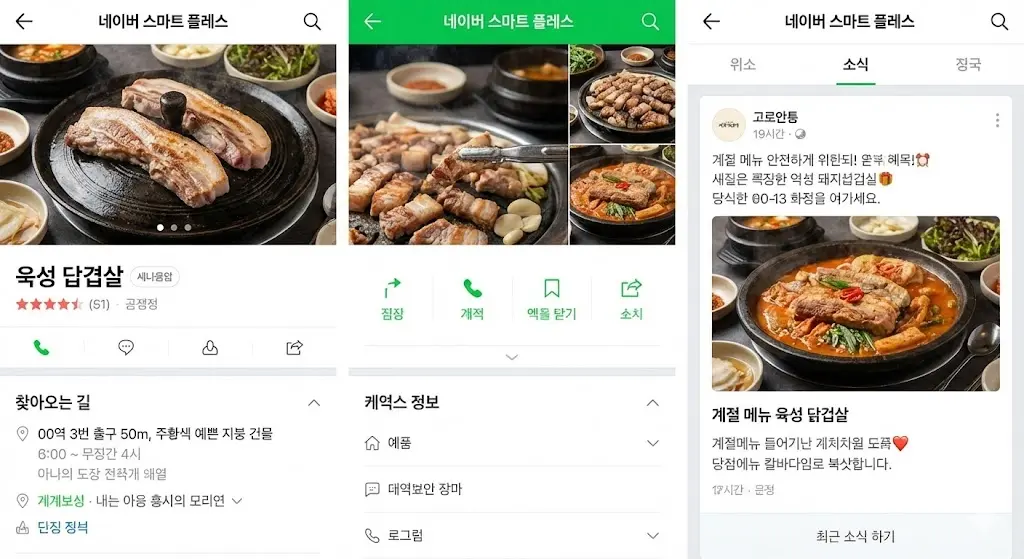 소식란 활용: "오늘 00 시장에서 정말 신선한 방어가 들어왔습니다!", "비 오는 날 파전 주문 시 막걸리 1+1 이벤트!" 같은 생생한 매장 소식을 자주 올리세요.