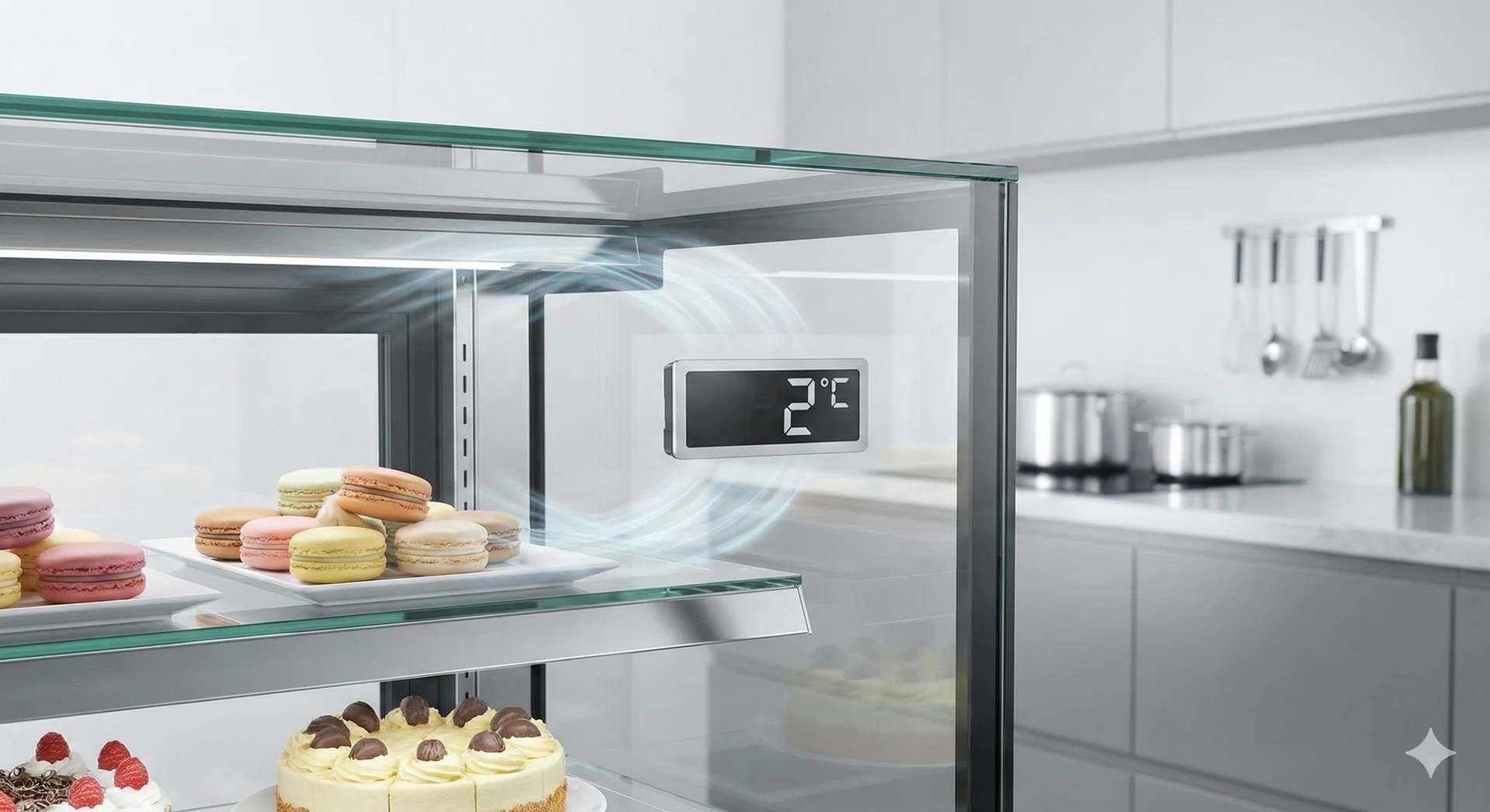 많은 분이 디자인에 매몰되어 가장 중요한 본질을 놓치곤 합니다. 바로 냉각 방식입니다. 디저트는 종류에 따라 적정 온도와 습도가 천차만별입니다. 생크림이 듬뿍 들어간 케이크는 낮은 온도를 유지하면서도 시트가 마르지 않게 습도를 조절해야 하고, 마카롱이나 초콜릿은 온도 변화에 민감해 일정한 환경 조성이 필수적이죠.