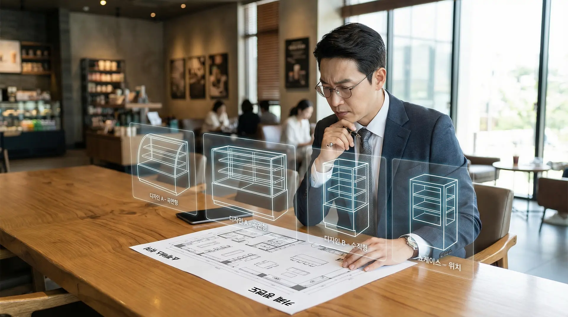 ๋””์ž์ธ ์ธก๋ฉด์—์„œ๋Š” ๋งค์žฅ ๋™์„ ์— ๋งž์ถฐ '์ „๋ฉด ์˜คํ”ˆํ˜•'์ธ์ง€, ์ง์›์ด ๊บผ๋‚ด์ฃผ๋Š” 'ํ›„๋ฉด ๊ฐœํํ˜•'์ธ์ง€๋ฅผ ๊ฒฐ์ •ํ•˜๋Š” ๊ฒƒ์ด UX(์‚ฌ์šฉ์ž ๊ฒฝํ—˜) ์„ค๊ณ„์˜ ํ•ต์‹ฌ์ž…๋‹ˆ๋‹ค.