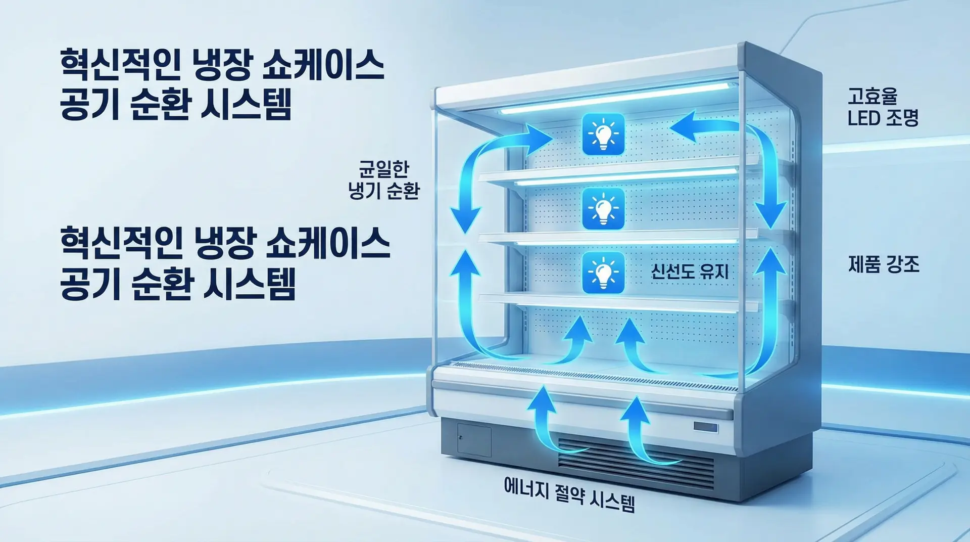 ์‡ผ์ผ€์ด์Šค์˜ ๋‹จ๋ฉด LED ์กฐ๋ช… ์œ„์น˜์™€ ๊ณต๊ธฐ ์ˆœํ™˜ ๊ตฌ์กฐ