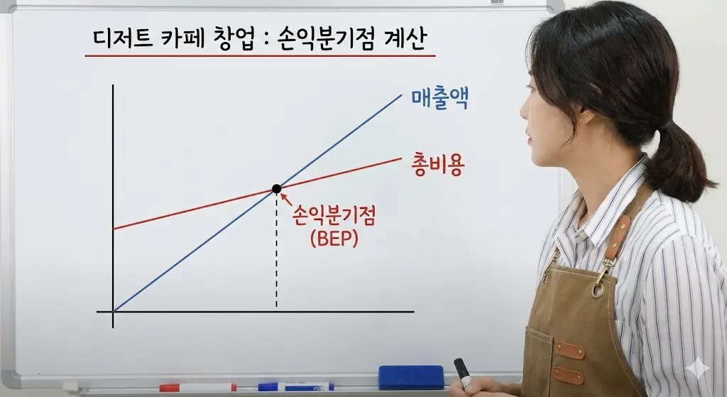 디저트 카페 창업 자본을 회수하기 위해 하루에 최소한 얼마를 팔아야 하는지 계산해 보는 것은 필수입니다. 손익분기점 산출 공식은 다음과 같습니다.