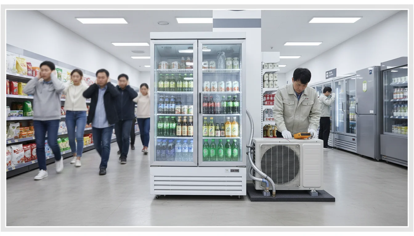 Q3. 중고로 산 쇼케이스가 소음이 너무 심해서 손님들이 시끄럽대요. 조용한 제품 고르는 기준이 있나요?