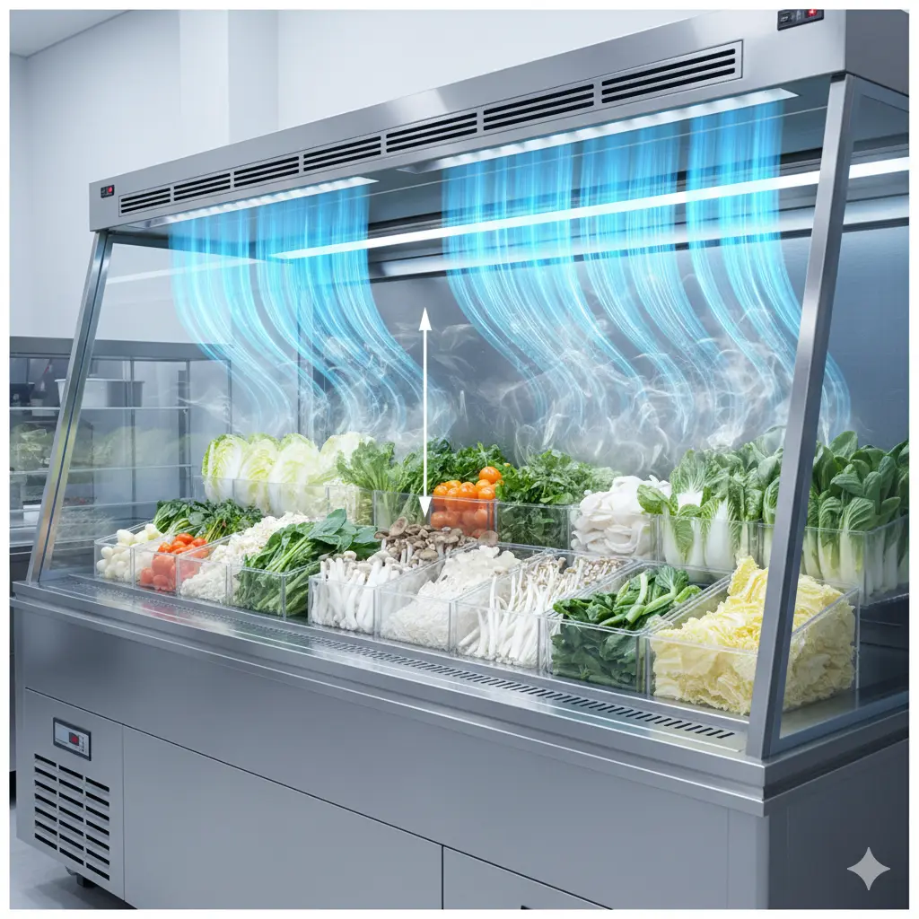 마라탕쇼케이스 신선도 보존 효과, 왜 채소가 금방 시들까? 정밀 에어커튼 기술의 실체