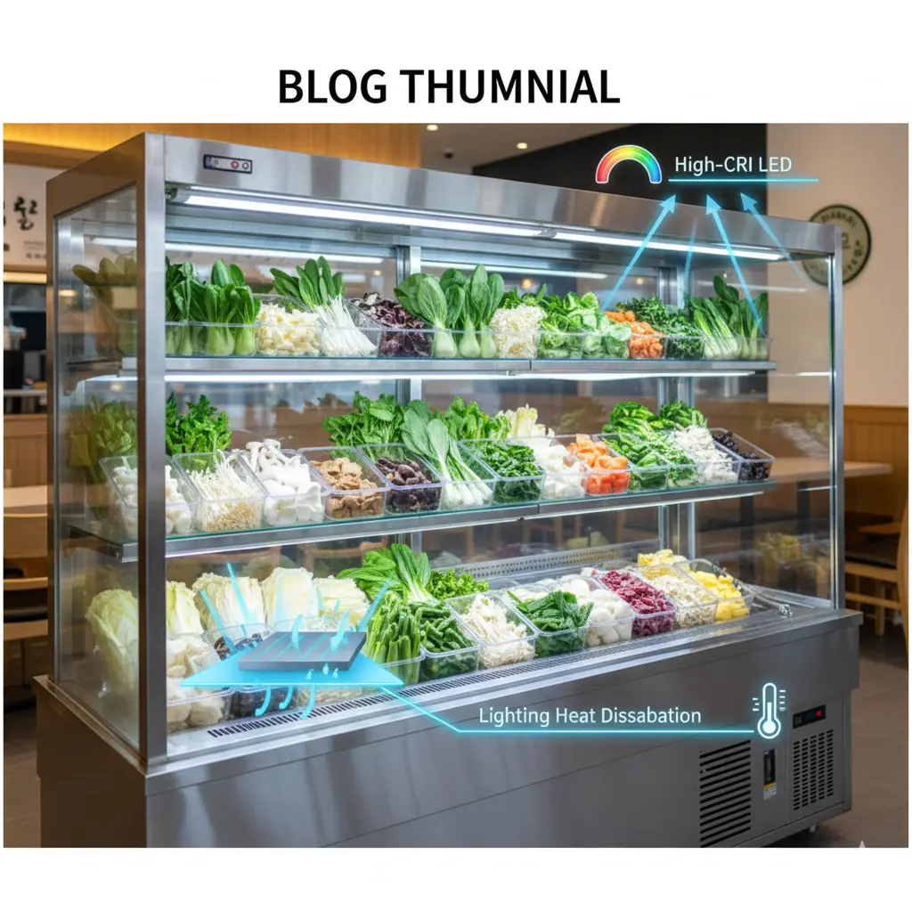 빛을 통해 상품성을 높이면서도 그 빛이 열이 되어 신선도를 해치지 않게 만드는 것, 이것이 바로 마라탕 매장에 필요한 광학 엔지니어링의 정수입니다.