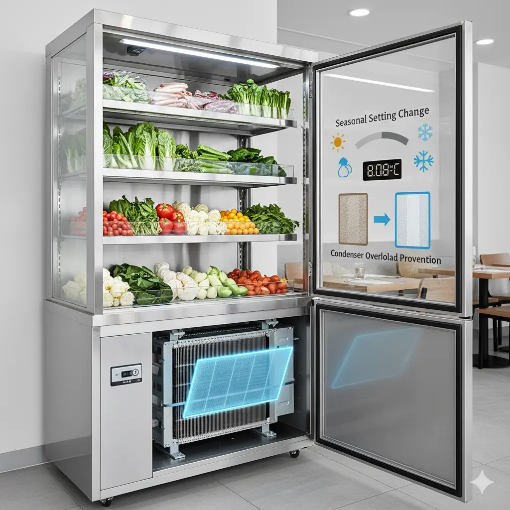 요약하자면, 기류 궤적에 최적화된 식재료 배치, 응축기 필터의 주기적인 청결 관리, 그리고 계절별 환경 변화에 따른 능동적인 설정값 보정이 필수적입니다.