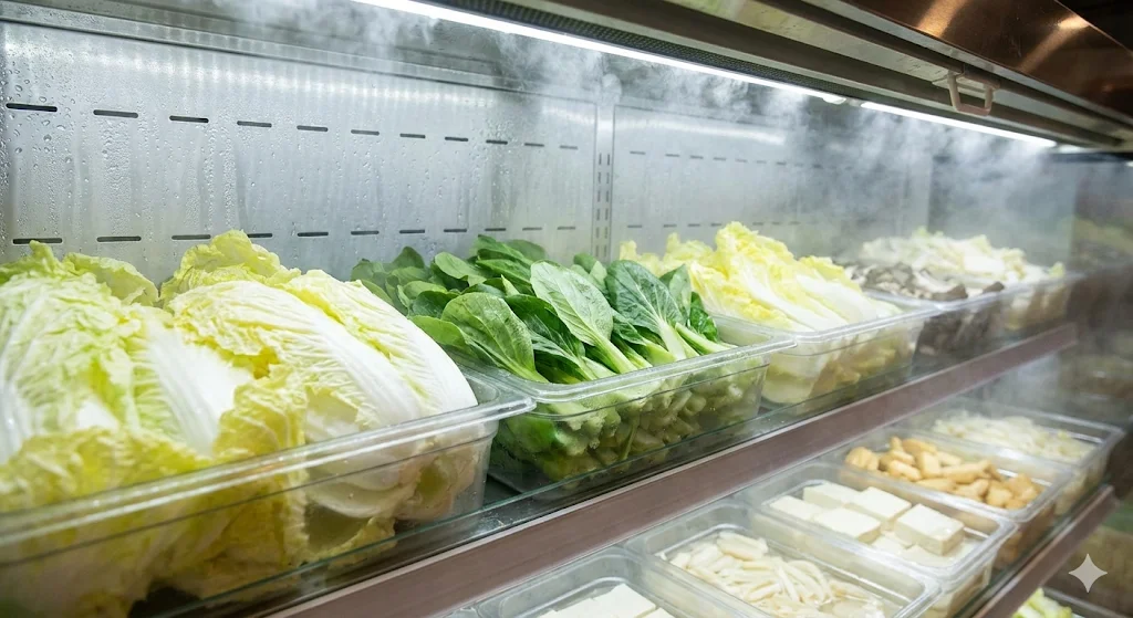 이 단계부터는 단순히 크기뿐만 아니라 '냉각 유지력'이 핵심입니다. 고객이 수시로 문을 열거나 오픈형으로 운영될 경우, 내부 온도 변화가 심해지면 채소의 숨이 빨리 죽기 때문입니다.