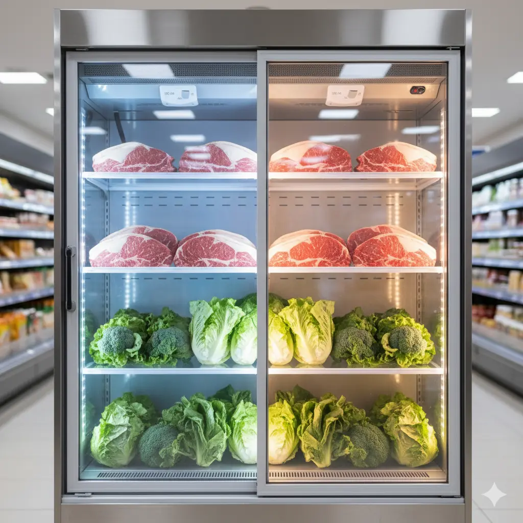 한성쇼케이스는 상품의 입체감을 살리는 하이엔드 광학 설계를 통해, 내부 조명이 식재료 본연의 생동감을 가장 화사하게 투영하도록 각도와 파장을 정밀하게 조율합니다.