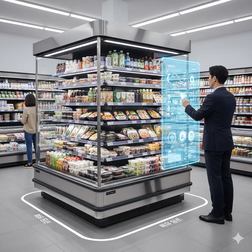 사장님께 필요한 것은 단순히 물건을 올려두는 마트진열대가 아니라, 사장님 대신 상품을 팔아주고 에너지를 아껴주는 '지능형 마케팅 시스템'입니다.