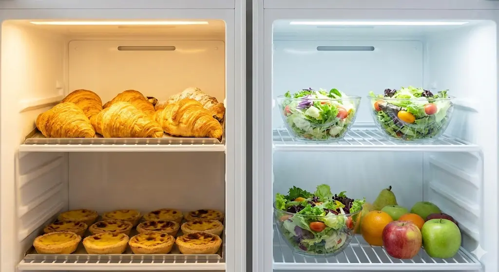 • 결로 현상 방지: 쇼케이스 유리에 습기가 차거나 내용물 표면에 물방울이 맺히면 신선함보다는 '오래됨'으로 오해받기 쉽습니다. 온도 관리와 습도 조절을 통해 항상 뽀송뽀송한 상태를 유지해야 합니다.