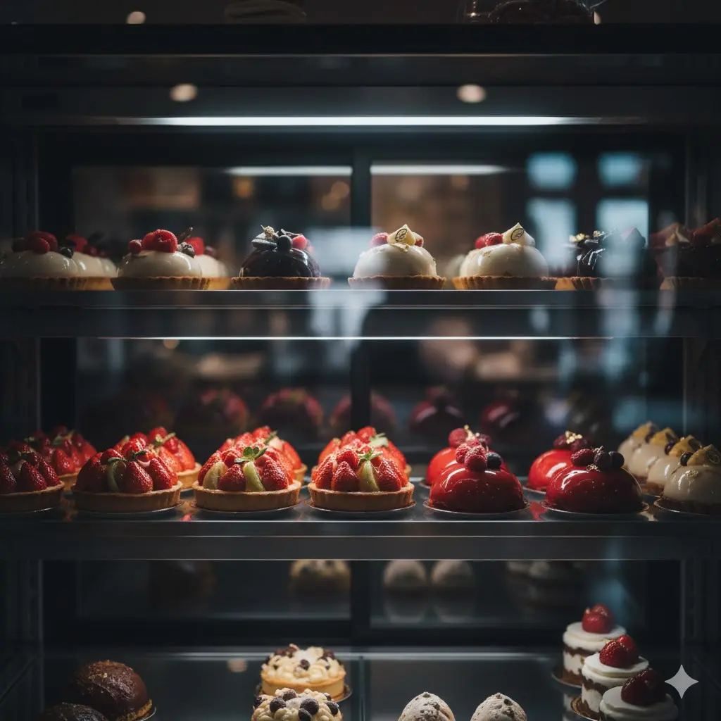 조명과 진열의 힘: 쇼케이스 내부 조명을 밝게 유지하여 신선함을 강조하세요. 화려한 색감의 에이드 재료나 조각 케이크가 쇼케이스 안에서 보석처럼 빛날 때, 고객은 "저것도 하나 추가요"라고 말하게 됩니다.