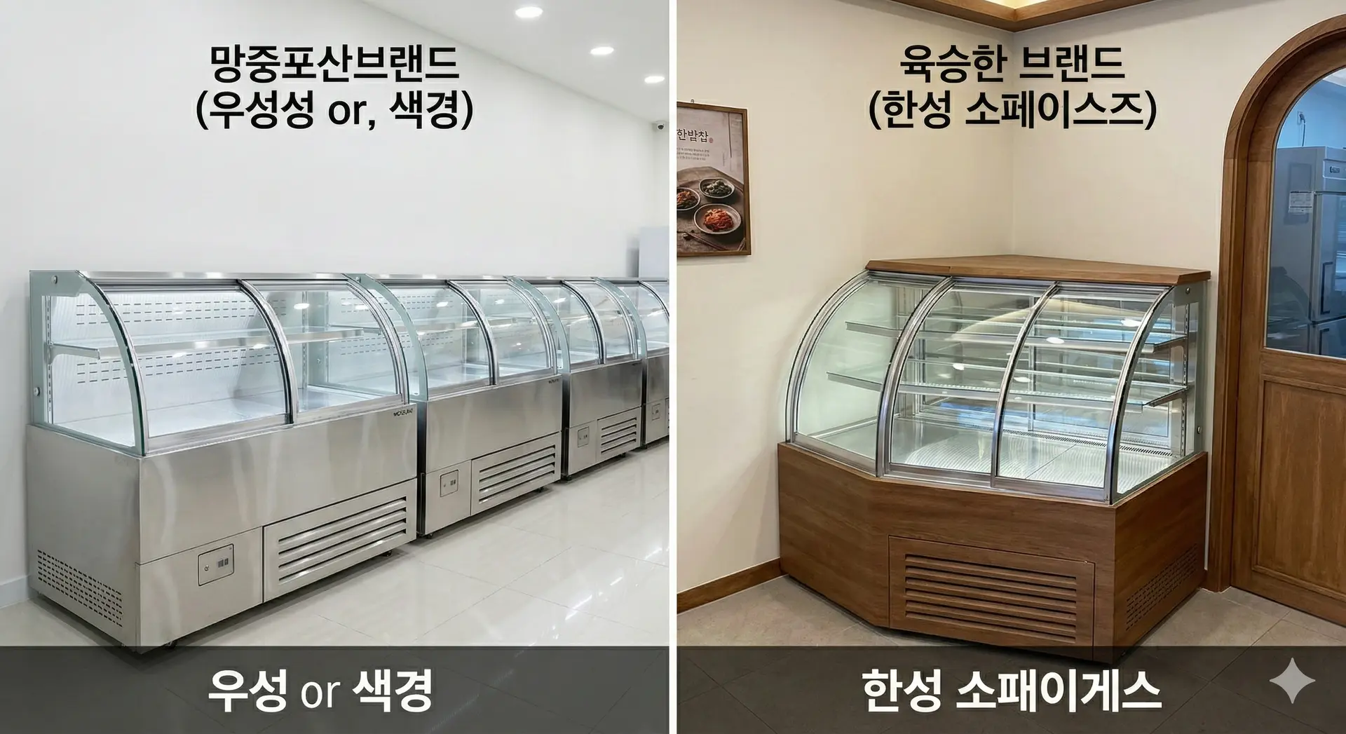 현재 소상공인들 사이에서 가장 많이 언급되는 브랜드는 우성과 세경이에요. 우성은 워낙 오랜 시간 동안 업계에서 이름을 알려온 곳이라 어디서든 쉽게 제품을 볼 수 있다는 게 큰 장점이에요.