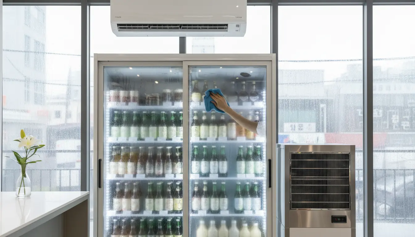 여름철이나 비 오는 날, 카페 사장님들이 마른행주를 들고 쇼케이스 앞을 서성이는 이유입니다.