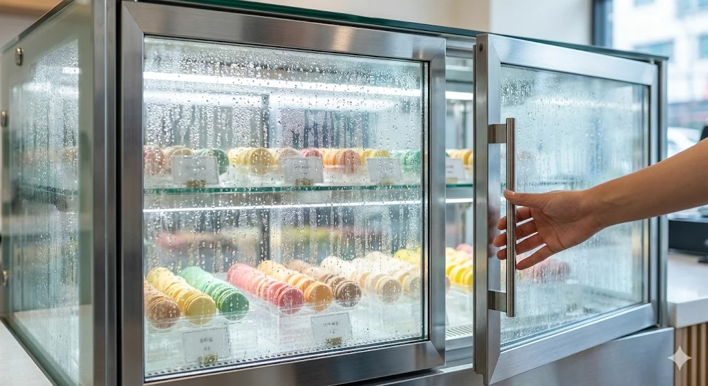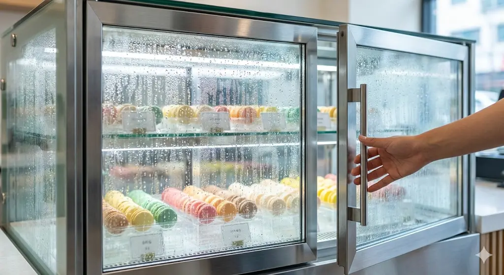 어떤 혹독한 습한 환경에서도 유리창은 마치 없는 것처럼 투명함을 유지하여, 사장님이 공들여 진열한 디저트의 디테일을 고객에게 24시간 선명하게 투영해 드립니다.