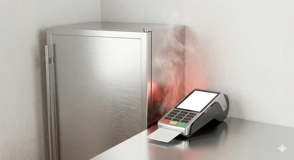 Q2. "매장이 좁아서 벽에 바짝 붙여놨더니 냉장고 주변이 너무 뜨거워요. 옆에 둔 카드 단말기가 고장 날까 봐 걱정됩니다."