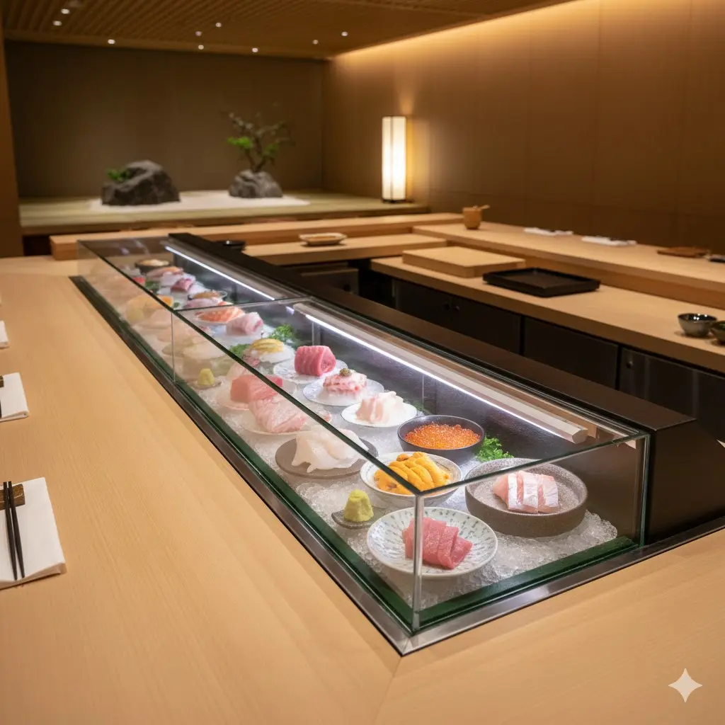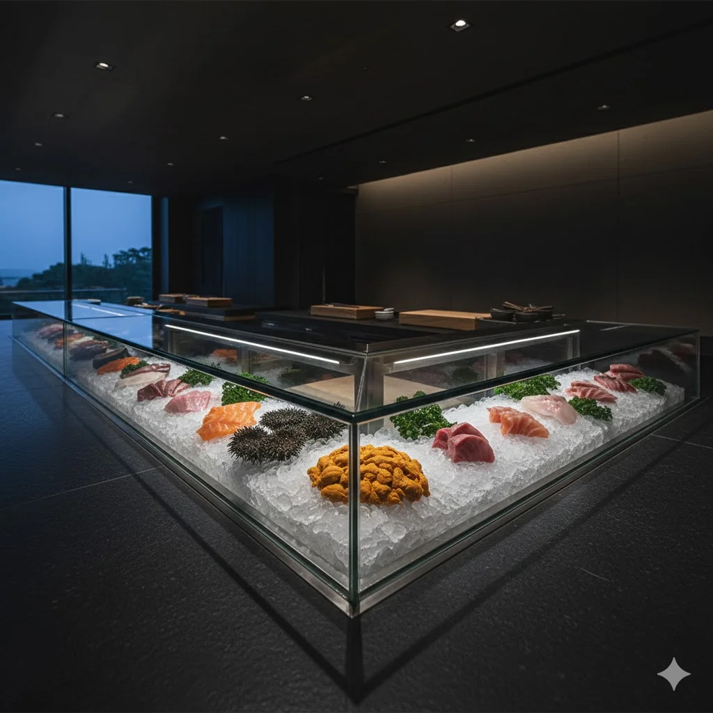 특히 고가의 스시 오마카세나 프리미엄 횟집에서 회 냉장고는 고객의 시선이 가장 오래 머무는 곳입니다.