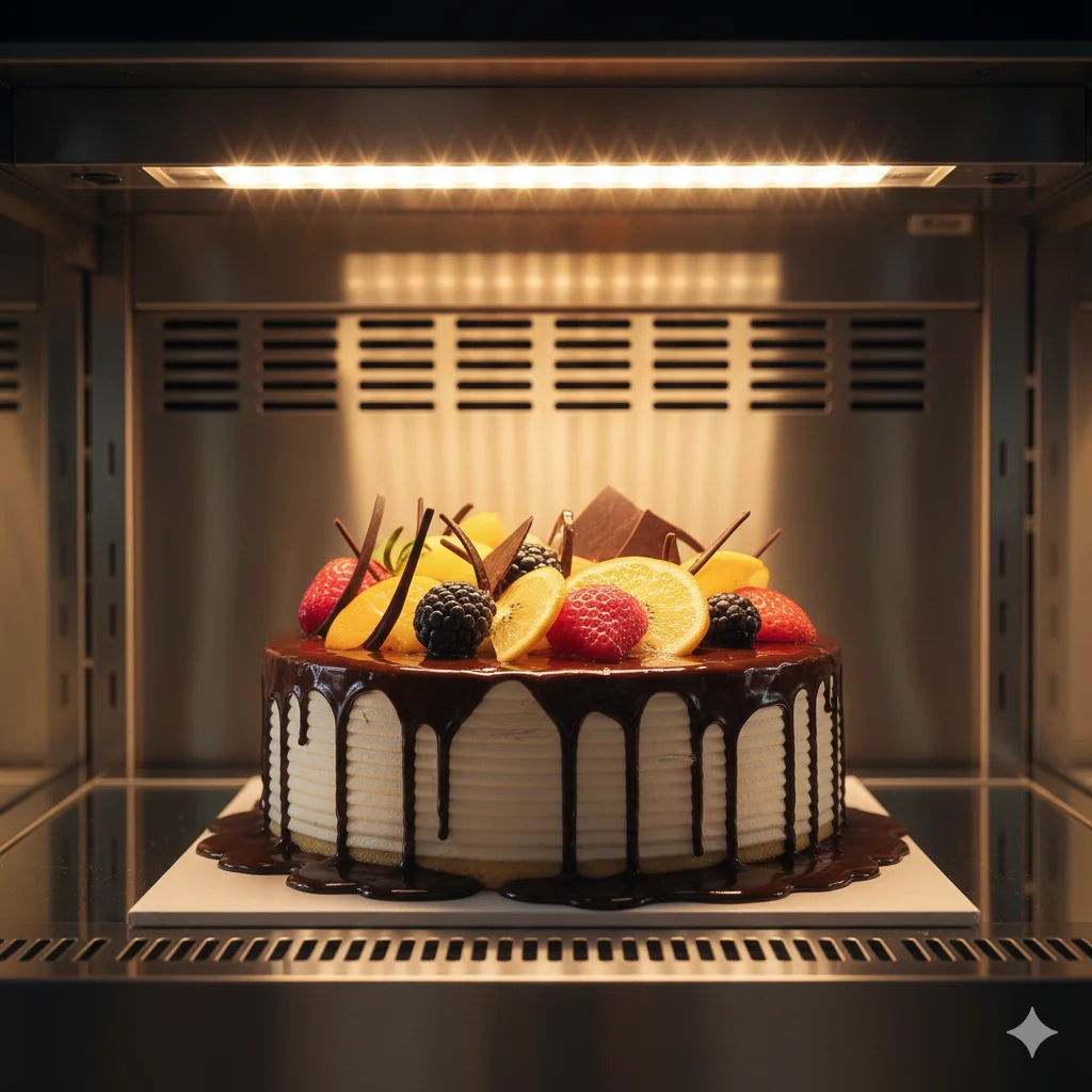 Q3. "조명 조도를 높였더니 빵 위의 초콜릿 장식이 녹아내리고 과일 광택이 죽어요. 냉장고인데 왜 내부가 뜨거운 거죠?"
