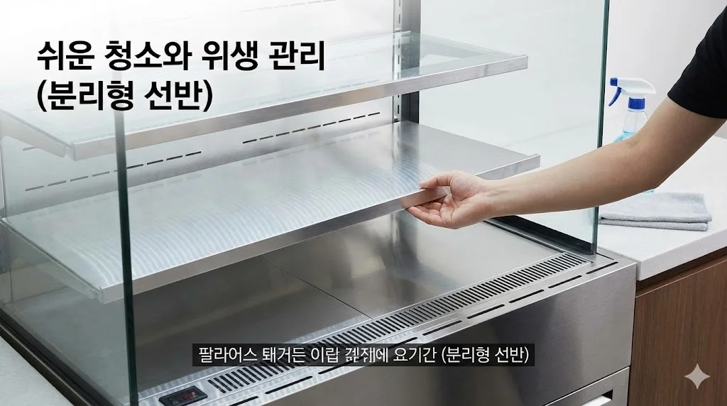 평대쇼케이스를 고를 때는 내부 선반이나 바닥판이 쉽게 분리되는 구조인지 확인하셔야 해요.