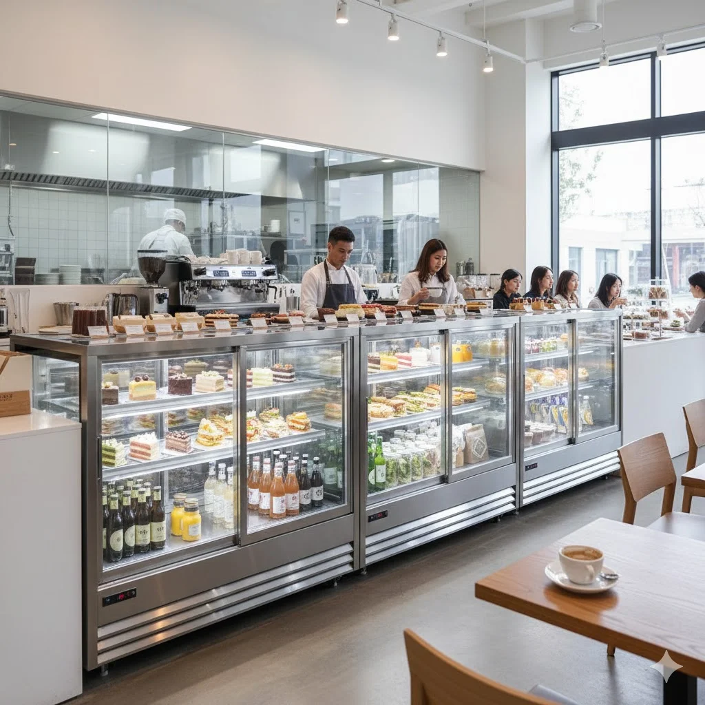 도어 개폐 방식: 전면 오픈인가, 후면 슬라이딩인가? 매장의 서빙 동선에 따라 직원의 피로도가 완전히 달라집니다.