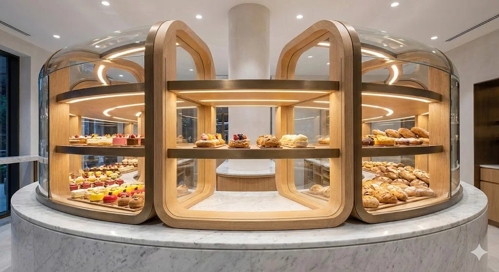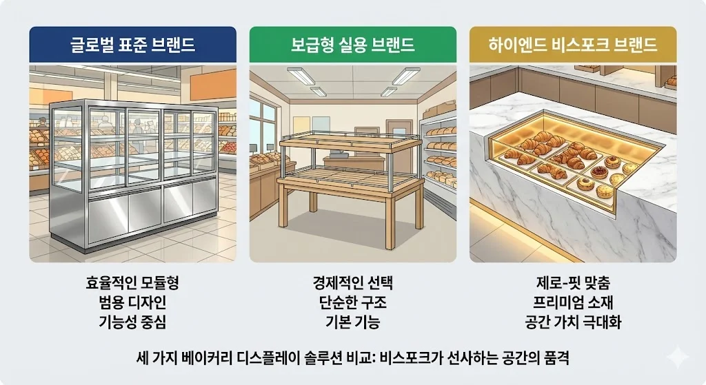 투박한 기성 진열대는 동선을 꼬이게 하고 매장을 좁아 보이게 만들지만, 잘 설계된 하이엔드 베이커진열대는 공간에 리듬감을 부여하고 고객의 시선을 자연스럽게 유도합니다.