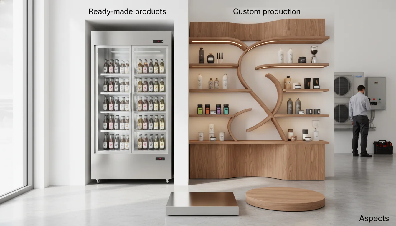 하지만 기성품 브랜드는 규격화된 사이즈(900, 1200, 1500 등)로만 나오기 때문에, 매장의 남는 공간(Dead Space)이 생기거나 동선이 꼬이는 문제가 자주 발생합니다.