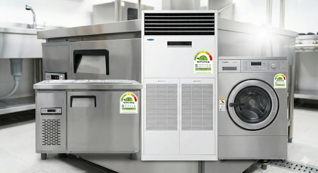 A: 네, 맞답니다! 업소용 냉장고뿐만 아니라 시스템 에어컨, 세탁기, 건조기 등 에너지 효율 1등급 제품이라면 함께 신청할 수 있는 품목이 꽤 많답니다.