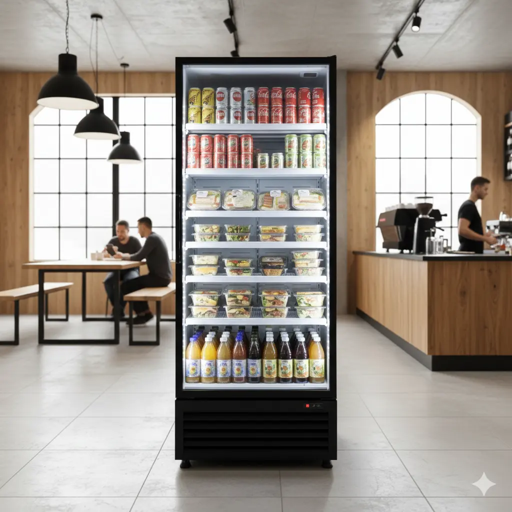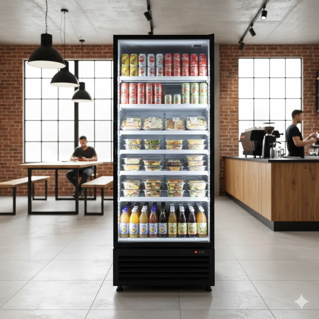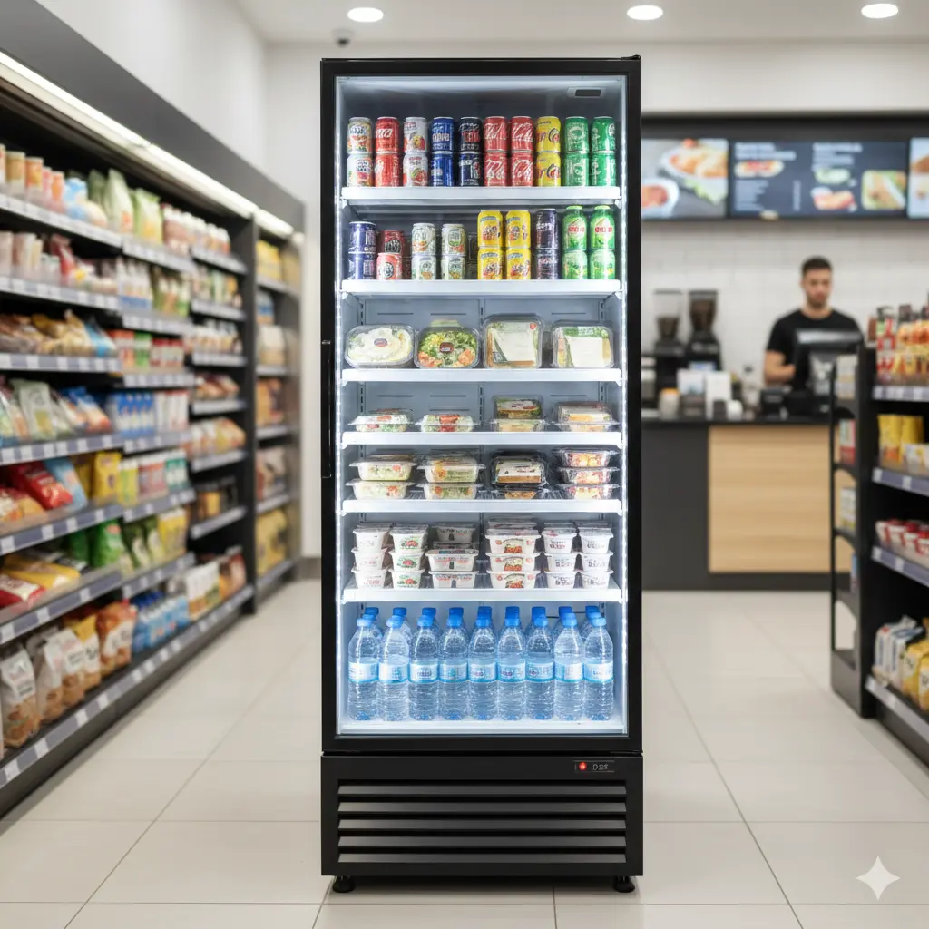 반면, 음료나 주류, 디저트를 고객에게 보여주고 판매해야 한다면 시각적 노출이 극대화된 '유리 도어 쇼케이스'가 정답입니다.