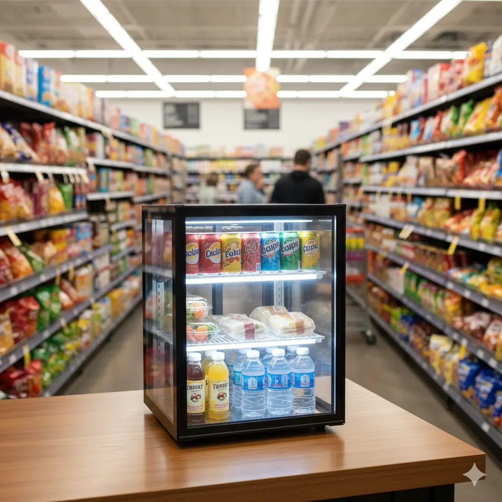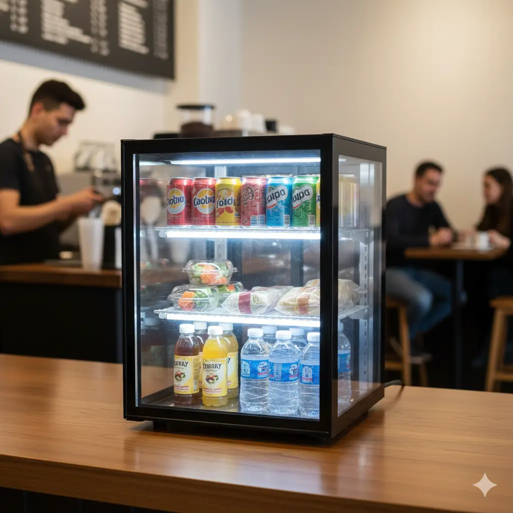 A. 동선과 판매 목적에 따라 다릅니다. 결제 시 고객의 시선에 바로 닿아 충동구매를 유도하고 싶다면 '카운터형 간이 냉장고'가 최고의 선택입니다.