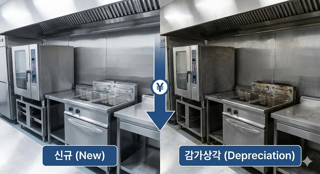 시설권리금을 계산할 때 가장 많이 범하는 실수가 '신규 설치 비용'을 그대로 인정해 주는 것입니다. 시설물은 시간이 지남에 따라 가치가 떨어지는 '감가상각'이 적용됩니다