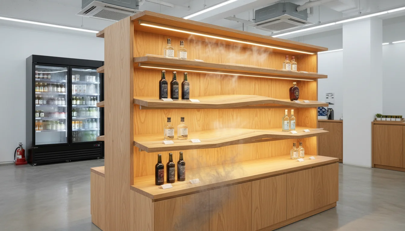 특히 베이커리나 카페, 주류 매장처럼 열을 사용하는 기기가 많거나 조명을 강하게 쓰는 곳에서는 진열대의 '소재'가 무엇보다 중요합니다.