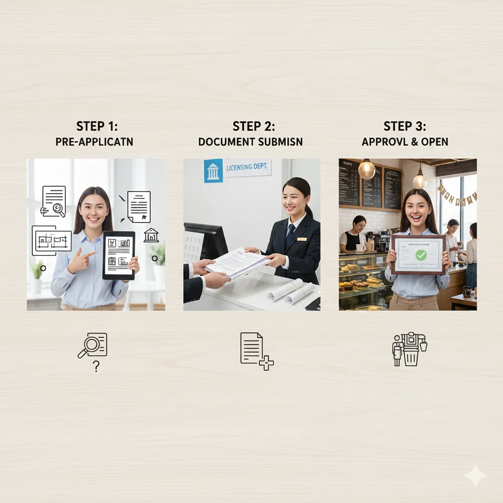 식품위생교육 수료증: 한국외식업중앙회 등에서 실시하는 위생교육을 사전에 이수해야 합니다. (온라인 수강 가능)
