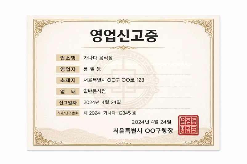 신뢰도 확보: 영업신고증은 해당 매장이 위생 시설과 안전 기준을 갖추었음을 국가가 증명하는 서류이기도 합니다.